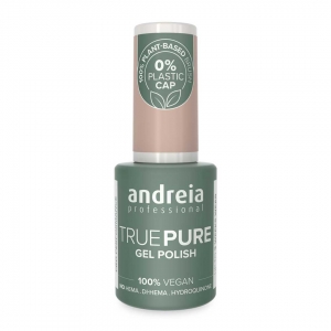 Verniz semipermanente da gama True Pure da Andreia Professional. Este verniz semipermanente é livre de Hema e Di-Hema. O frasco com embalagem verde feita de plantas recicladas. num formato de 10,5ml.